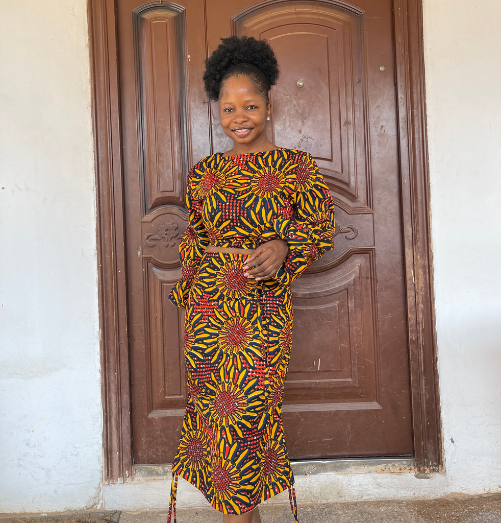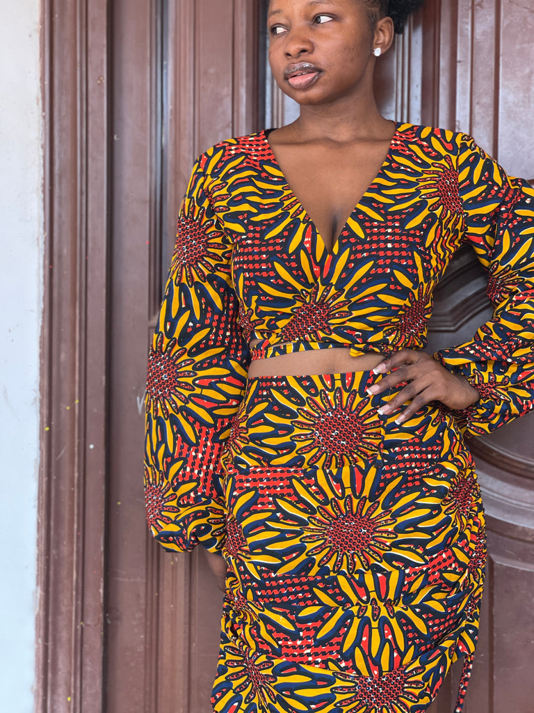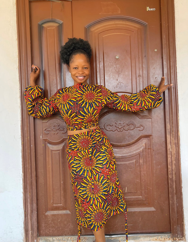 Fabric placement may vary from the pictured item due to the irregular patterned nature of African fabrics.Colors may slightly vary on display screen or monitor
