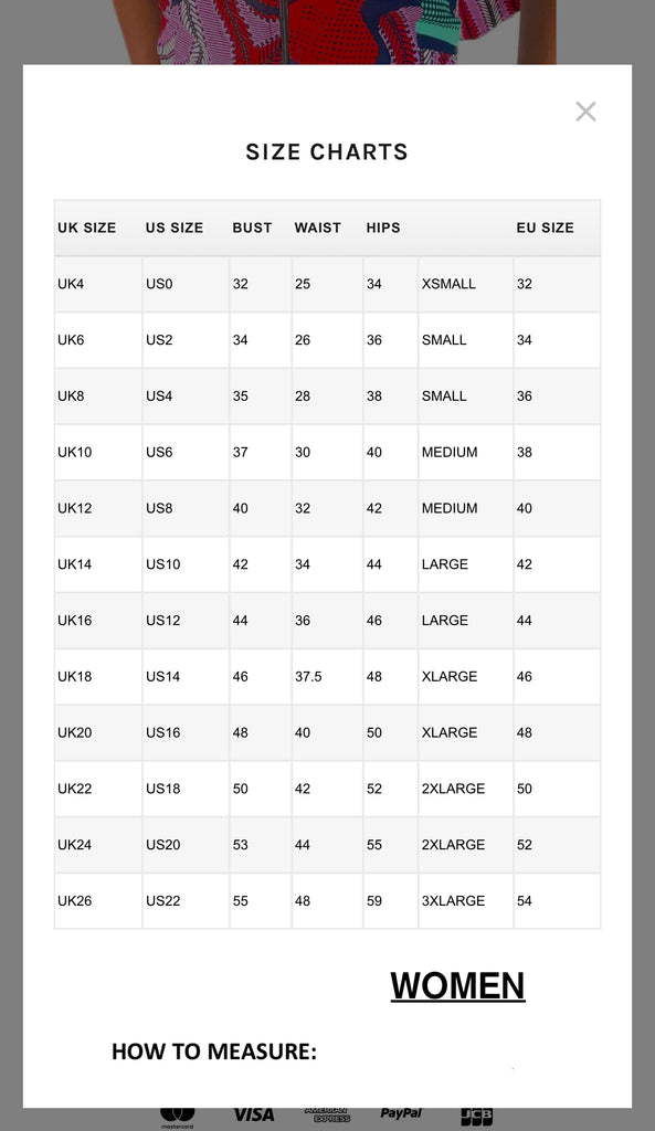 Choosing the right size gives us the confidence to deliver the best perfect fit for you, so do well to contact me if you have any challenge choosing size and also we advise if you have your measurements , kindly send to me by clicking on the WhatsApp icon to chat with us and we will gladly use that to fix for you.