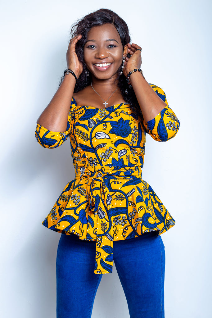 Fabric placement may vary from the pictured item due to the irregular patterned nature of African fabrics.Colors may slightly vary on display screen or monitor