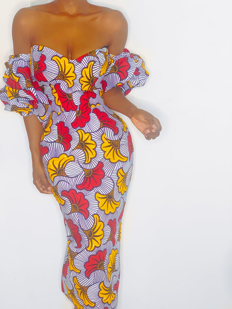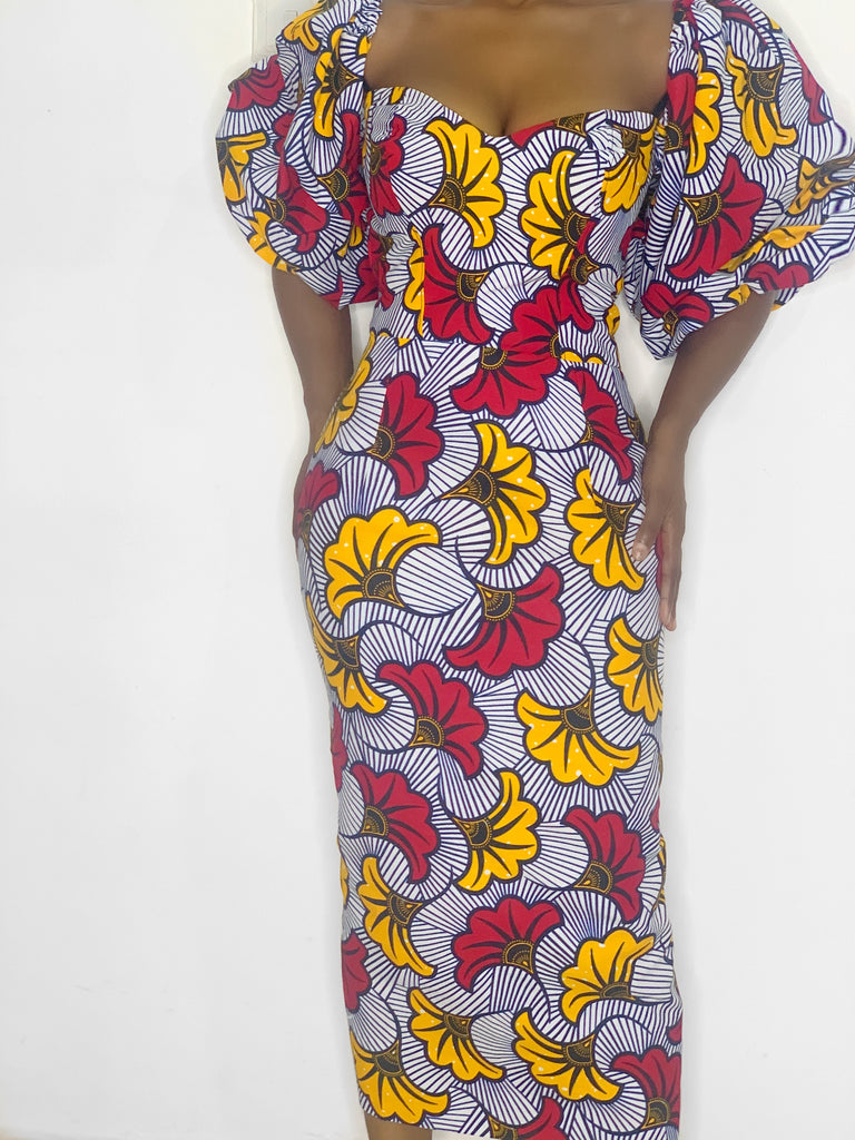 Fabric placement may vary from the pictured item due to the irregular patterned nature of African fabrics.Colors may slightly vary on display screen or monitor